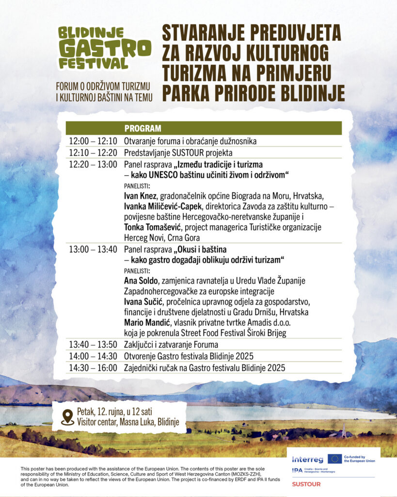 Gastro festivala Blidinje 2025 održat će se od petka 12. do nedjelje 14. rujna na platou ispred HPD Pločno u Masnoj luci, Park prir...