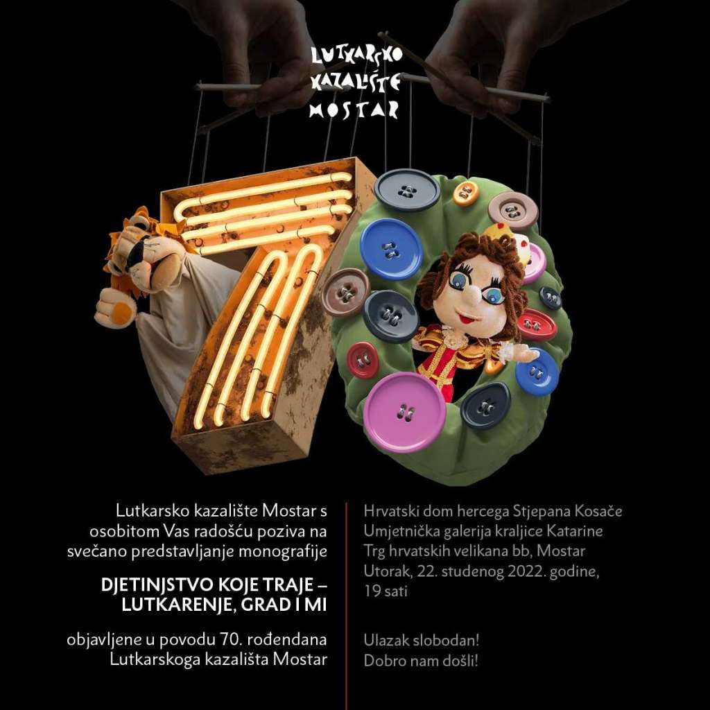 U sklopu proslave 70 godina neprekinutog umjetničkog rada Lutkarskog kazališta Mostar, u utorak, 22. studenoga u 19 sati, u Umje...