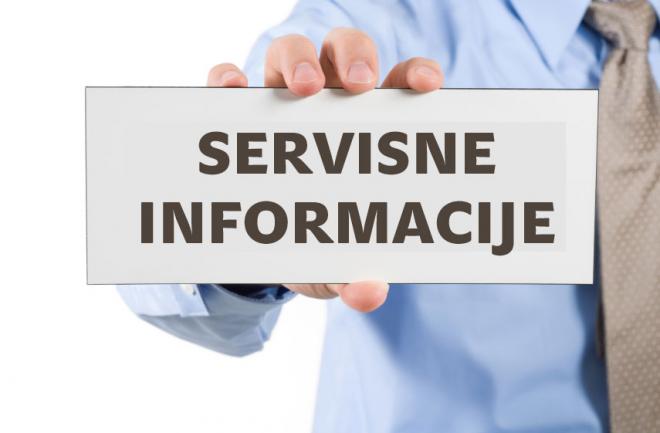 Servisne informacije za ponedjeljak, 29. veljače