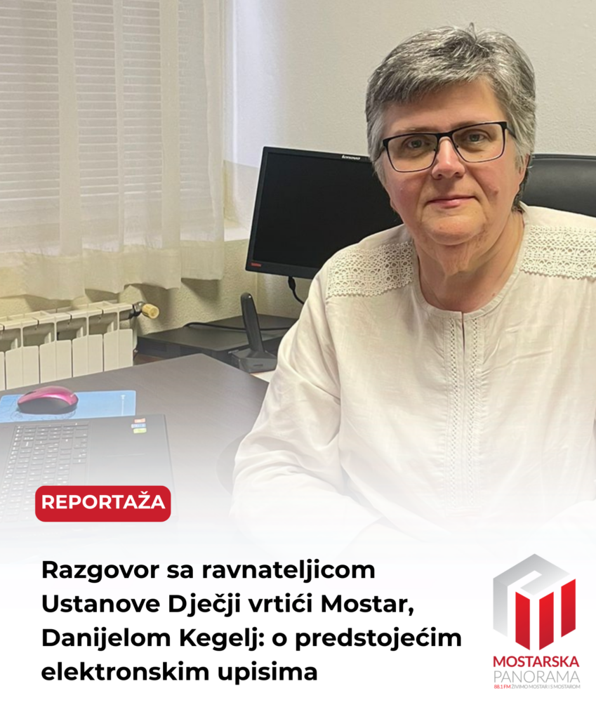 U današnjem programu Mostarske panorame ugostili smo ravnateljicu Ustanove Dječji vrtići Mostar, gospođu Danijelu Kegelj, s kojom smo razgovarali o predstojećim elektronskim upisima djece u vrtiće za pedagošku 2025./2026. godinu.